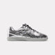 Rooted in our '90s indoor soccer archives and reinvented in collaboration with PLEASURES. These Reebok shoes showcase the grunge and punk style the LA-based streetwear label is known for, with a silver crinkled leather upper and black leather accents. The look is finished with a custom branding window, tongue and footbed.