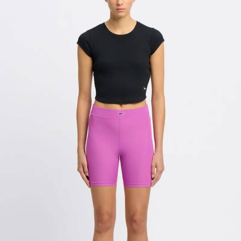This T-shirt is cut from a lightweight ribbed cotton blend to a slim, cropped silhouette. The Vector logo patch at the hem adds a subtle touch of Reebok heritage.