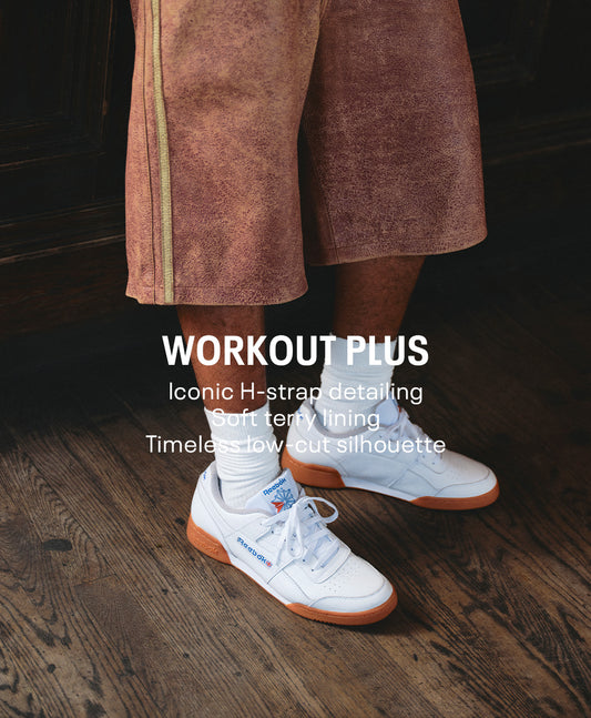 Connue pour sa tige en cuir résistant, sa bride en H de soutien et son esthétique patrimoniale épurée, la Workout Plus est rapidement devenue une chaussure préférée à l'intérieur comme à l'extérieur de la salle de sport.