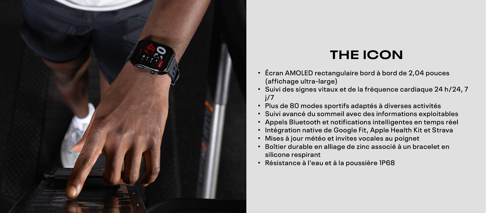 La montre intelligente Reebok Icon combine performance fiable et ADN athlétique authentique de Reebok. Conçue pour le quotidien comme pour l’entraînement, elle offre une autonomie prolongée, un suivi complet de la condition physique et des données de santé en temps réel pour vous aider à bouger en toute confiance. Que vous suiviez vos pas, vos calories ou votre fréquence cardiaque, l’Icon propose des fonctionnalités intelligentes adaptées à votre routine.