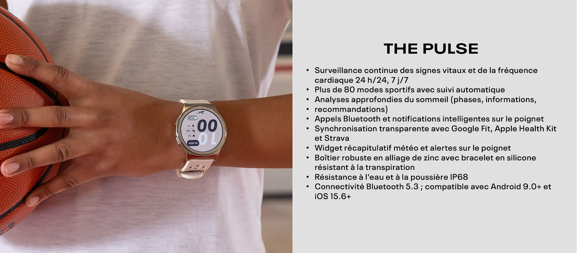 Pour les passionnés de fitness et les athlètes, la montre intelligente Reebok Pulse pousse le suivi de performance encore plus loin. Dotée d’un écran AMOLED éclatant, d’une autonomie pouvant atteindre 10 jours et de capteurs avancés pour la fréquence cardiaque, le sommeil, le SpO₂ et le stress, elle vous offre des données approfondies sur votre bien-être. Avec plus de 80 modes sportifs et une résistance à l’eau et à la poussière, la Pulse suit le rythme de chaque entraînement et défi du quotidien.