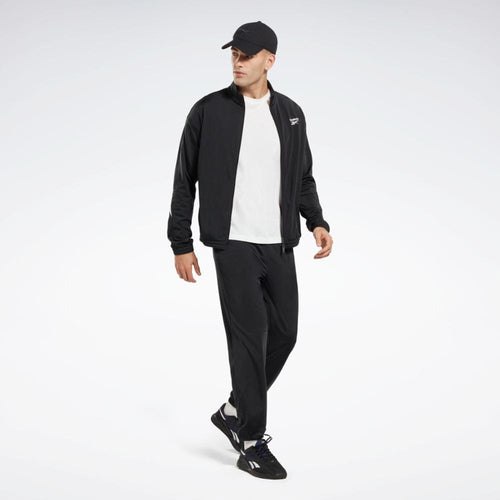 A comfortable pair of track pants is a wardrobe staple. You'll want to add this pair from Reebok to your collection. Silky-smooth tricot fabric combined with the tapered design gives them a sleek, minimalist feel. Elastic cuffs stay put when you move, and side pockets keep small items close.