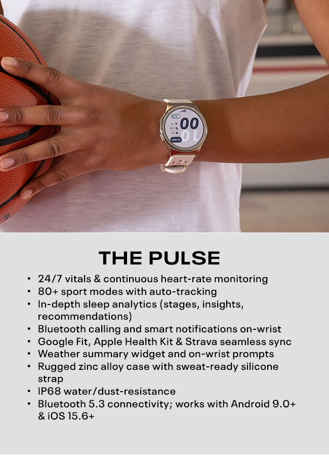 For fitness enthusiasts and athletes, the Reebok Pulse Smartwatch takes performance tracking further. Featuring a vibrant AMOLED display, up to 10-day battery life, and advanced sensors for heart rate, sleep, SpO₂, and stress, it empowers you with deep insights into your wellbeing. With over 80 sports modes and water/dust resistance, the Pulse keeps pace with every workout and lifestyle challenge.