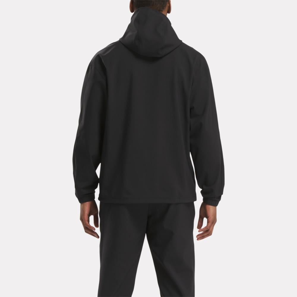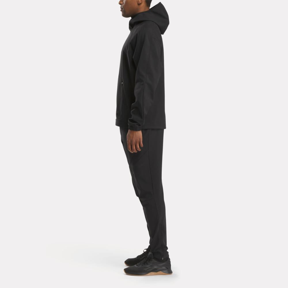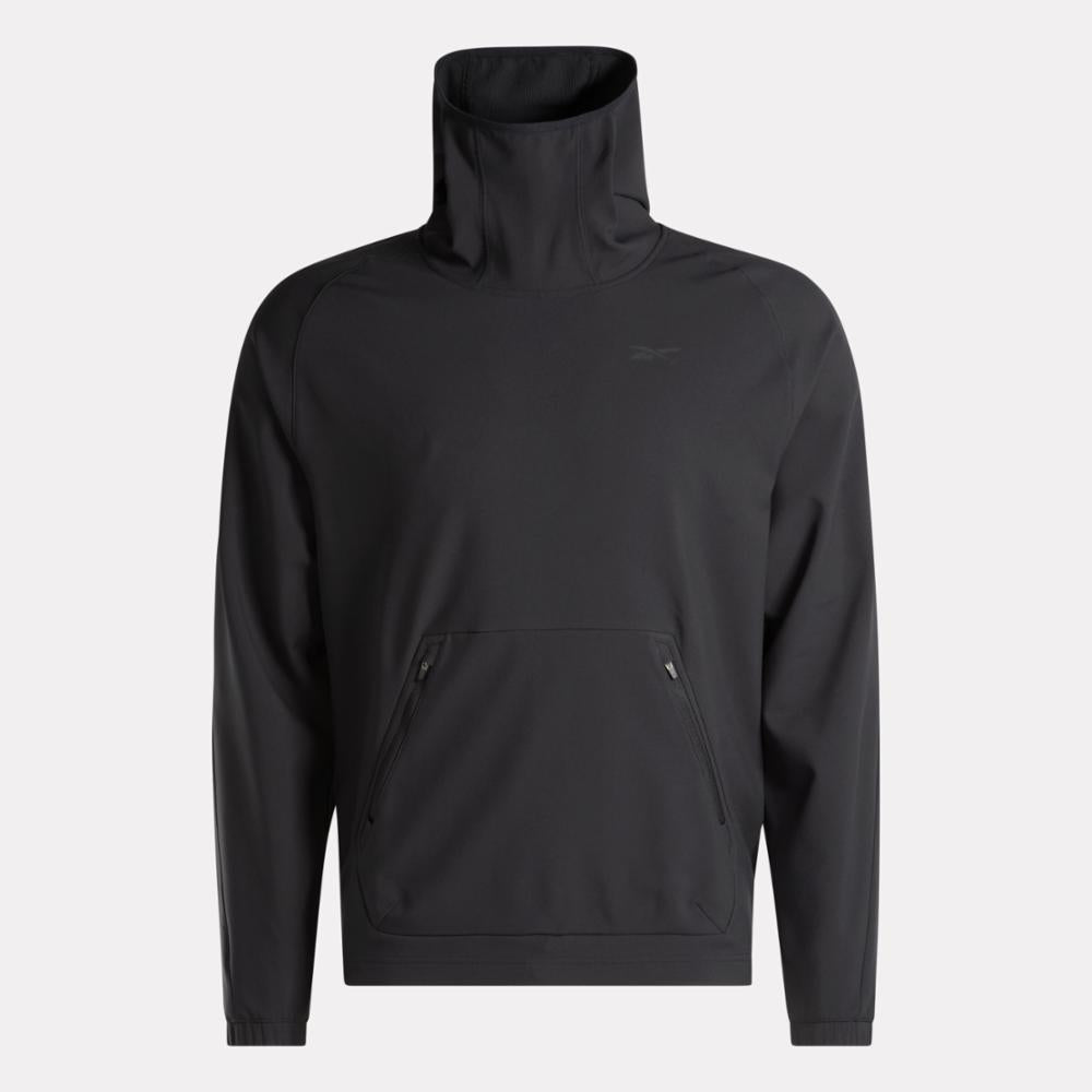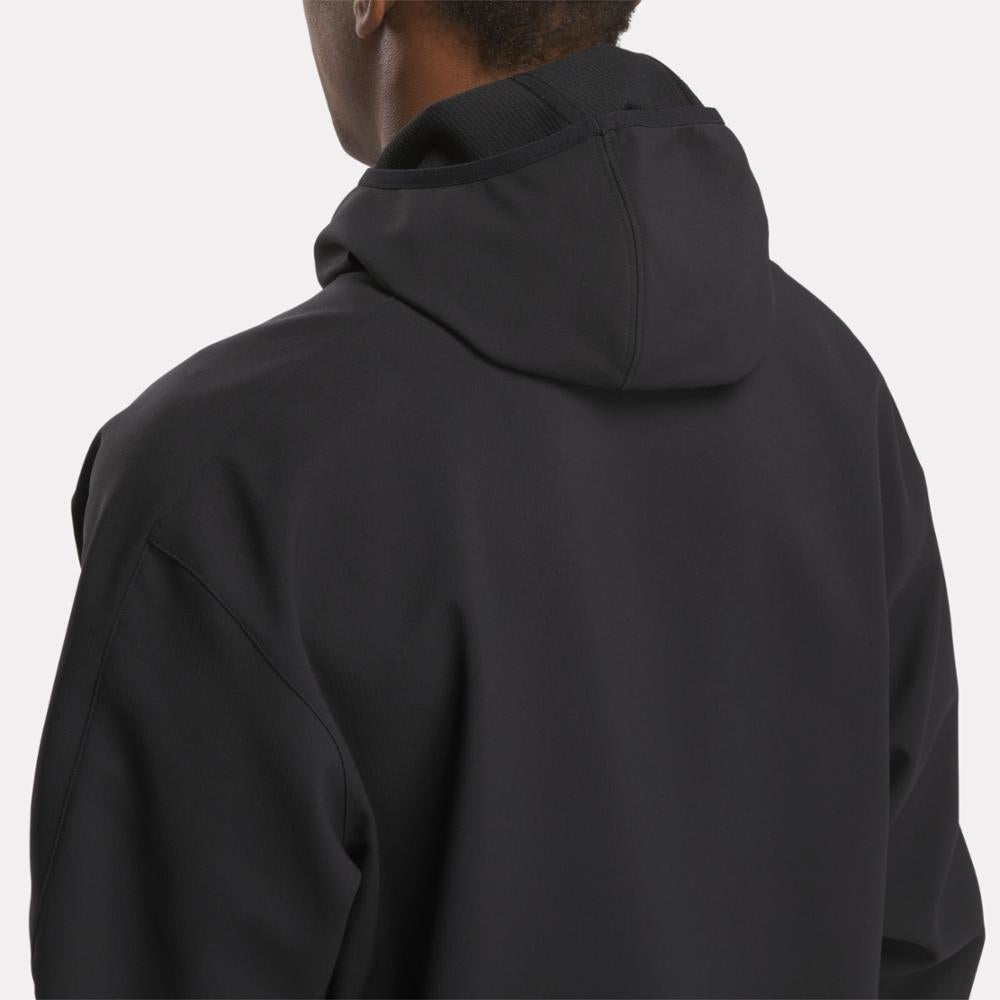 When the temperature drops, reach for this men's Reebok hoodie to get you to the gym in comfort. Bonded grid fleece with a woven exterior holds in heat, and a scuba hood lets you block out cold air. The bungee-adjustable hem nods to outdoor style.