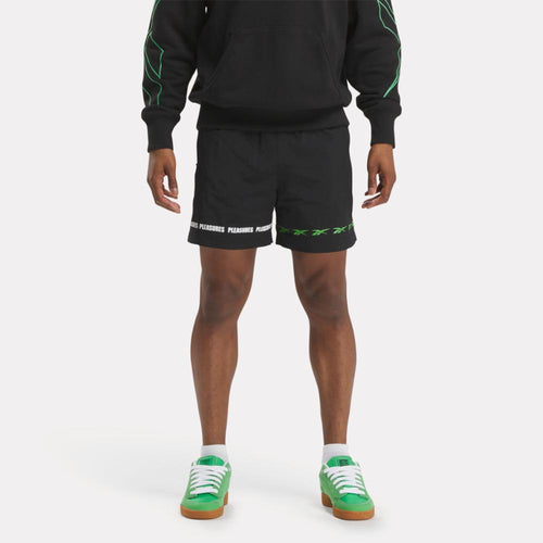 Even as cannabis legalization picks up speed, too many are still behind bars, convicted of what is no longer a crime. Created with L.A.-based streetwear brand Pleasures and part of the Human Rights Now! collection, these shorts seek to end inequities in the cannabis industry and promote justice reform. They're made of crinkle nylon fabric and have Reebok and Pleasures logos around the hem.