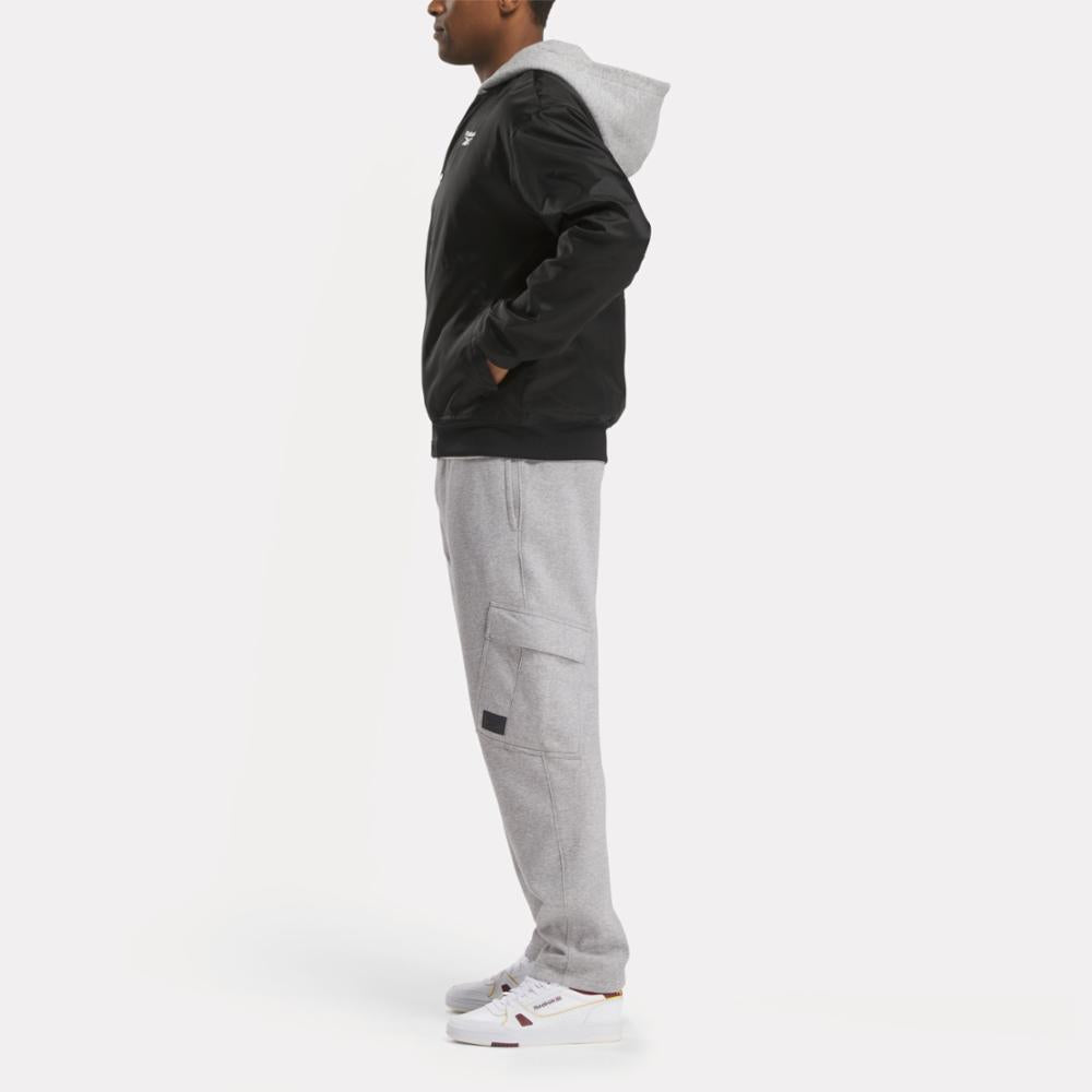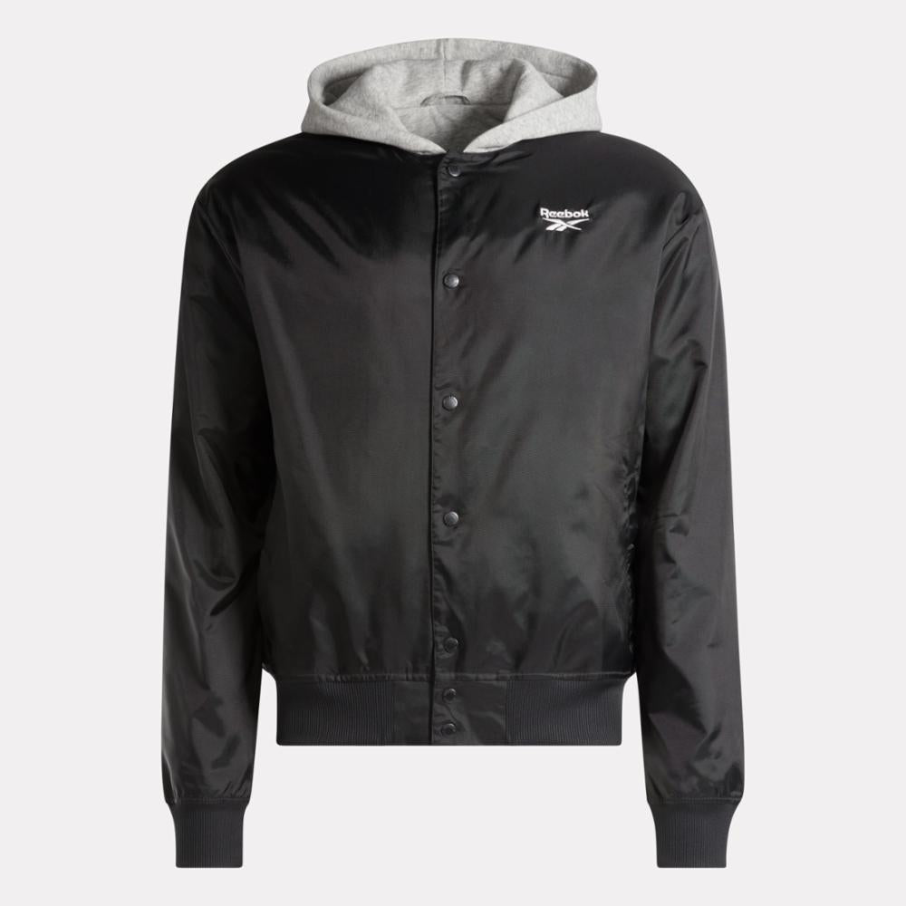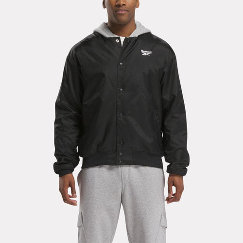 Feel like you're in the game when you're wearing this Reebok jacket. The iconic coaches jacket style of the '90s inspired the look of this jacket. Light insulation and a fleece hood bring the coziness when the weather turns chilly.