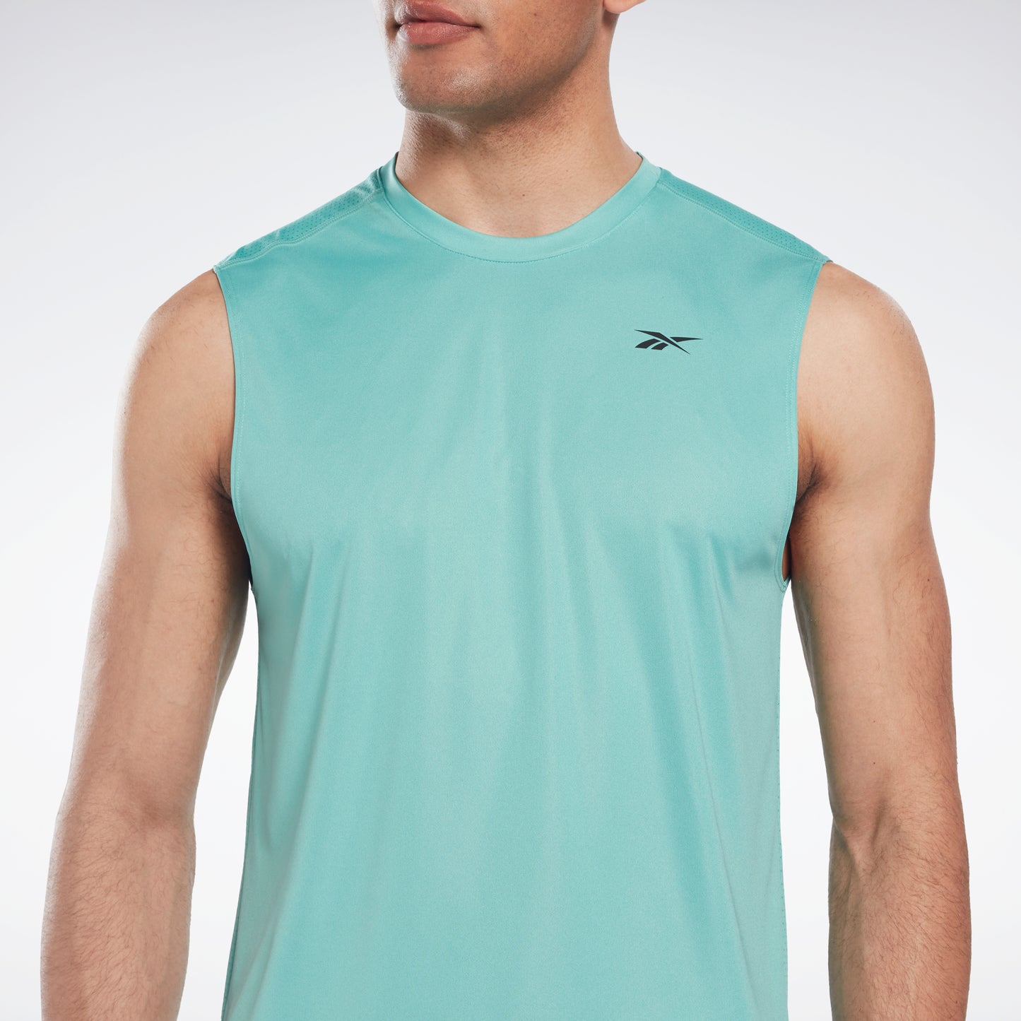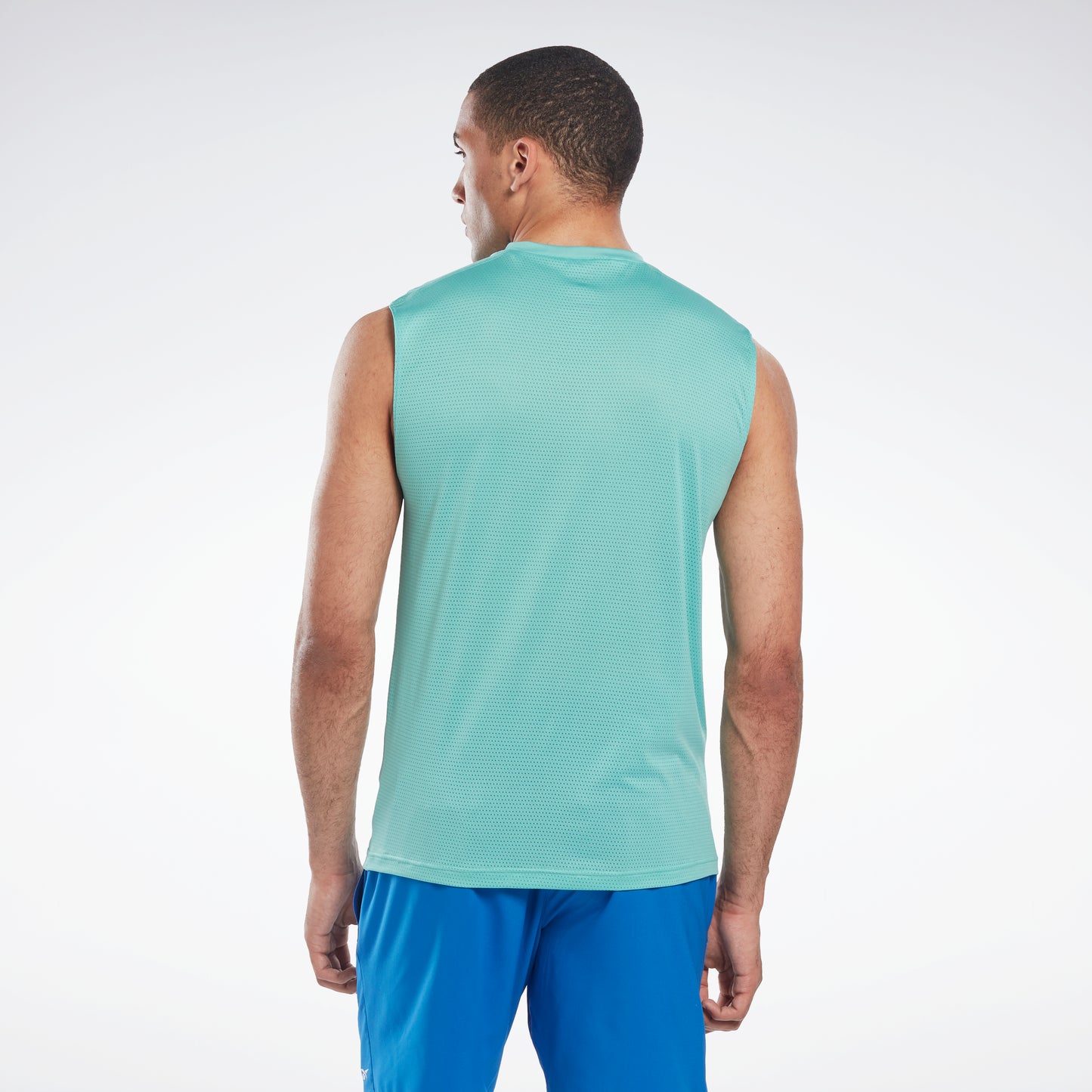 Dial up the intensity in your workout in this men's Reebok sleeveless training t-shirt. Sweat-wicking fabric helps you stay dry. A mesh back panel adds ventilation to keep you cool rep after rep.