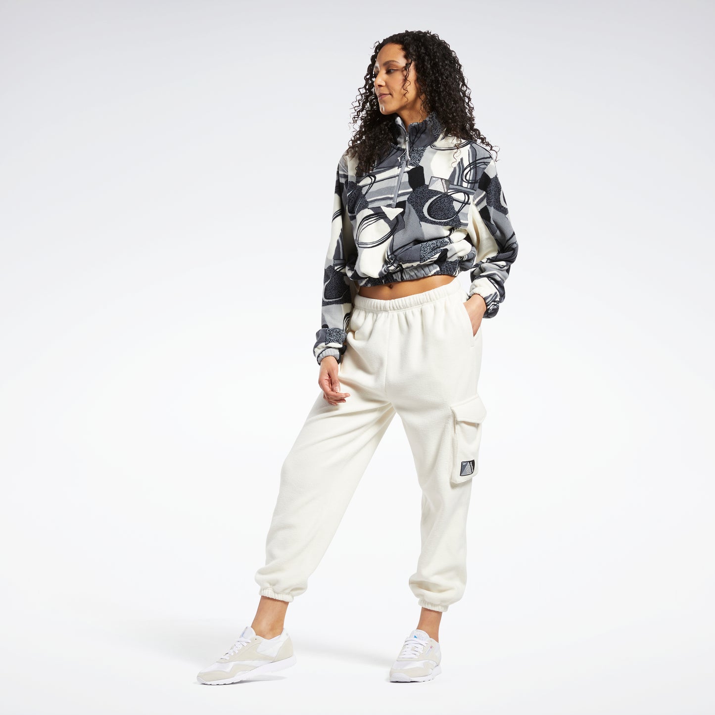 You're not the shy and quiet type. This women's eye-catching sweatshirt suits you perfectly. A colourful vintage-style design gives you a retro Reebok look. Plush polar fleece and a stand-up collar keep you warm, so you can be comfortable wherever your day takes you. The oversized fit makes it easy to layer and creates a casual vibe.
