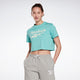 Add some sport style to your daily look. This women's Reebok graphic tee brings athletic flair to your wardrobe thanks to the iconic Vector logo that's front and centre. The soft jersey fabric feels great for all-day wear, and is destined to become a favourite from day one. Our cotton products are entirely sourced through sustainable cotton farming and are made with at least 50% Better Cotton.