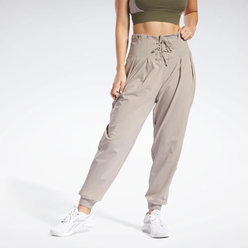 Grace isn't just for barre or Pilates class. Grace is the way you move through the world. These women's Reebok pants are made of cotton jersey with a bit of stretch for a comfortable feel. A relaxed fit with pleats and tapered legs give them an easy, modern style.