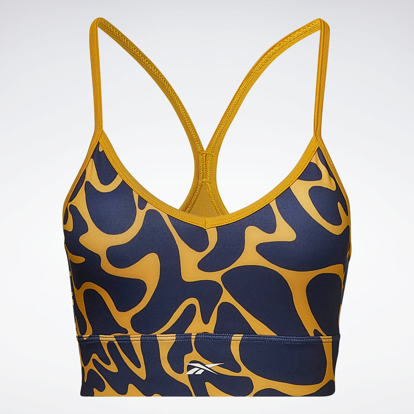You're not one to shy away from a challenge. This Reebok workout bra offers medium-impact support to help you push yourself to lift heavier and bike longer. The Speedwick fabric moves sweat away from the skin to help you stay cool and dry through your last set. Removable pads offer coverage and shaping.