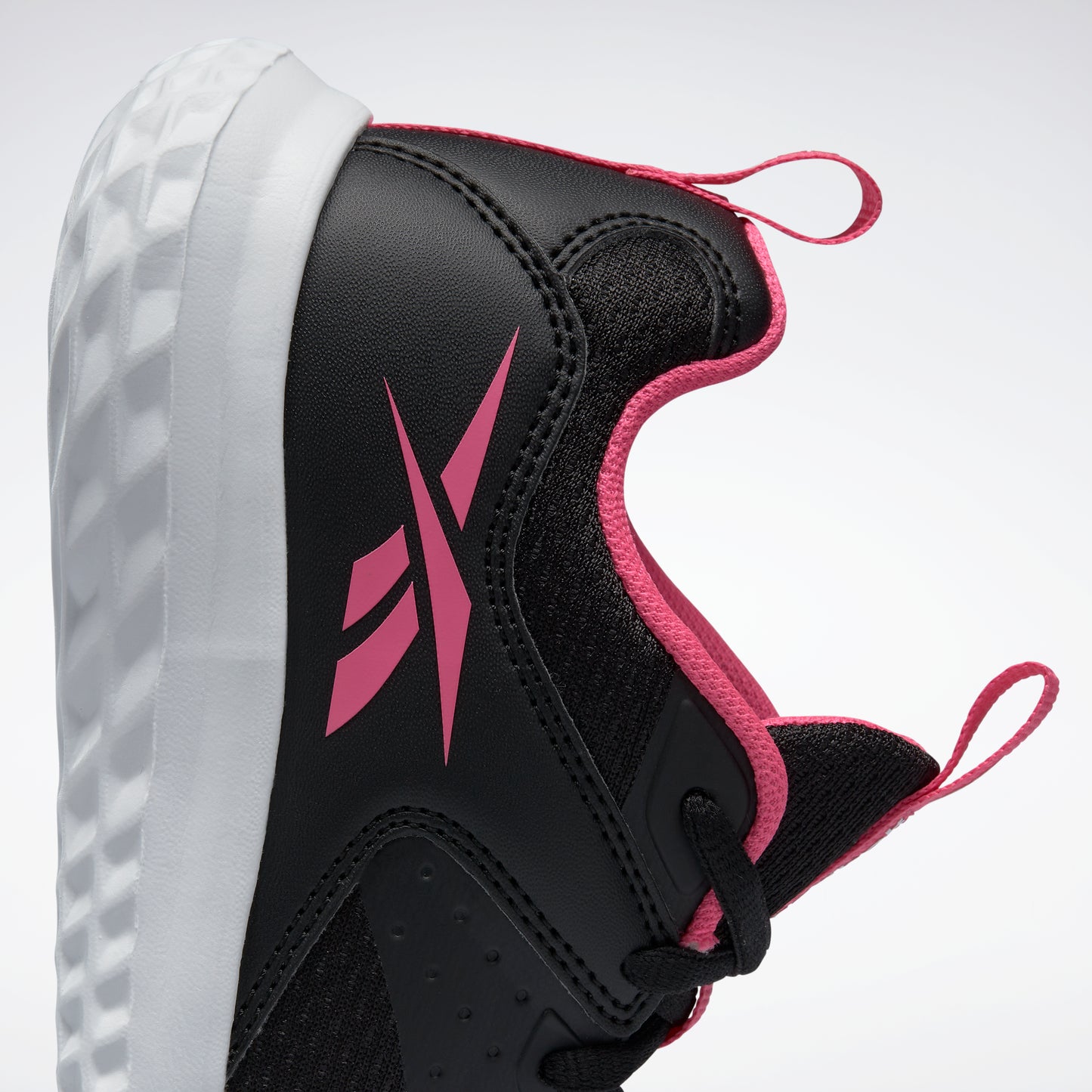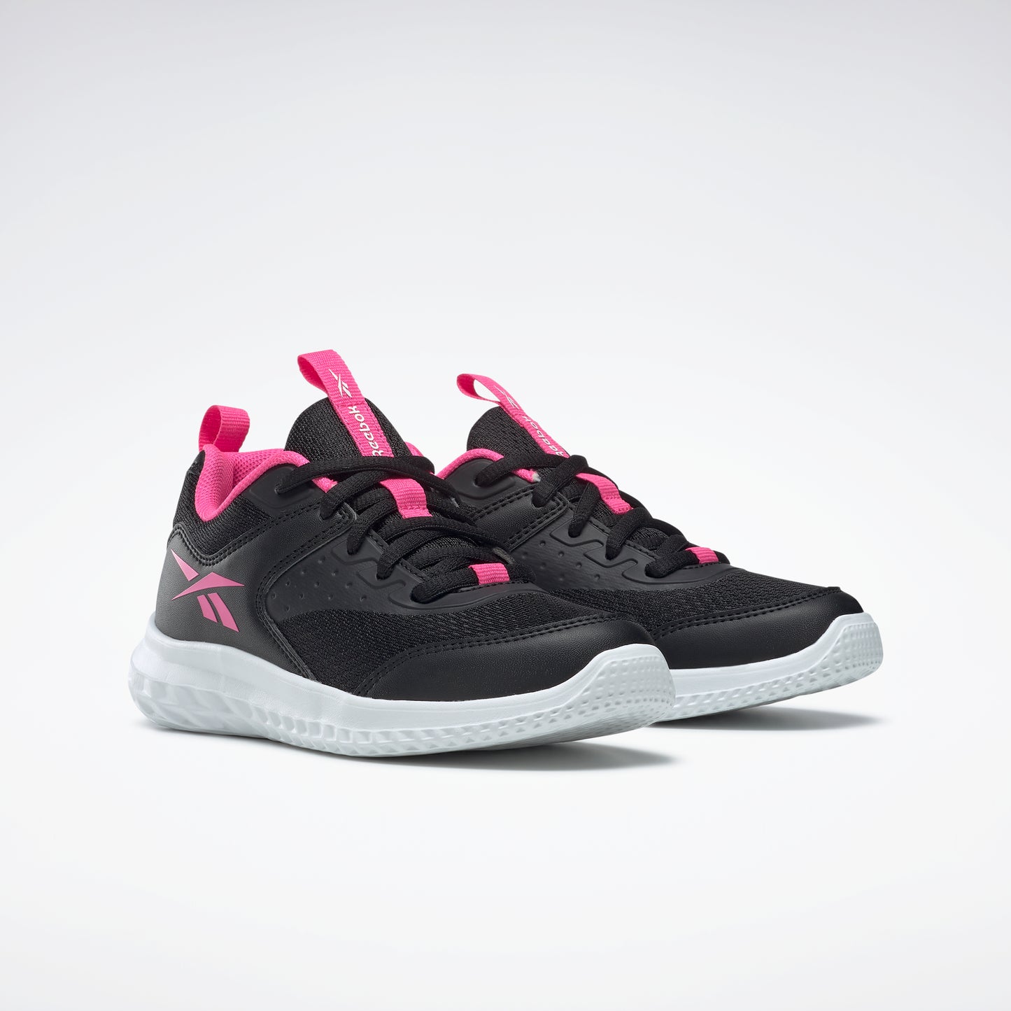 She plays hard. These girls' Reebok running shoes are built for support on the playground and beyond. The textile upper is lightweight and comfortable, and the iconic Vector logo adds athletic style. The EVA midsole provides underfoot cushioning for running, jumping and climbing.