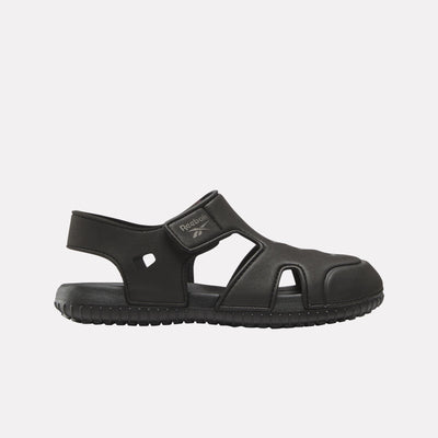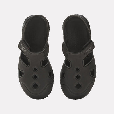 Keep little feet comfy and protected with the Sunkissed Sandals. The lightweight EVA upper is easy to clean, while cutout details enhance breathability. A secure hook-and-loop closure ensures a snug fit, and the closed-toe design adds extra protection. Perfect for all-day play in the sun!